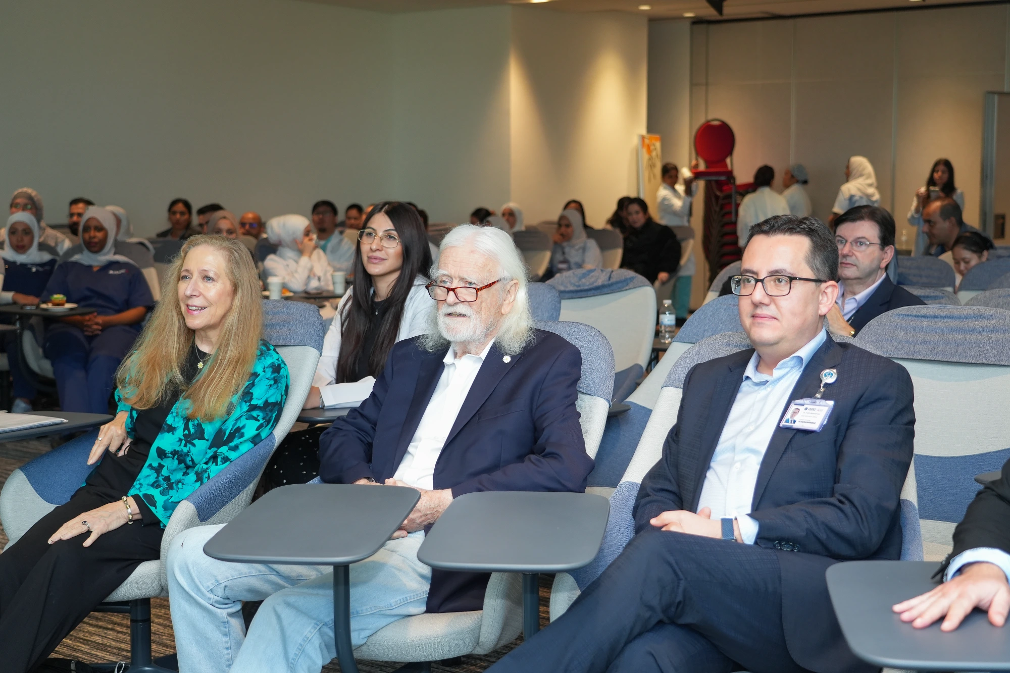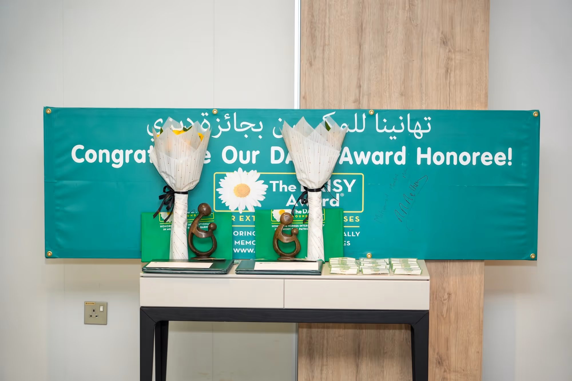 واكتسب الحفل هذا العام طابعًا استثنائيًا، حيث تشرفنا بحضور بوني ومارك بارنز، مؤسسي مؤسسة ديزي، اللذين شاركا في تكريم ممرضينا والاحتفاء بالأثر الإنساني العميق الذي يتركه عملهم يوميًا. وقد أضفى حضورهما قيمة كبيرة على المناسبة، وجسّد الرسالة العالمية للجائزة، والمتمثلة في تقدير الممرضين الذين يذهبون إلى ما هو أبعد من واجبهم المهني لصنع فرق حقيقي في حياة المرضى.