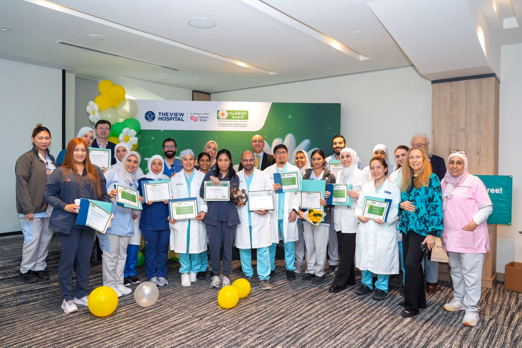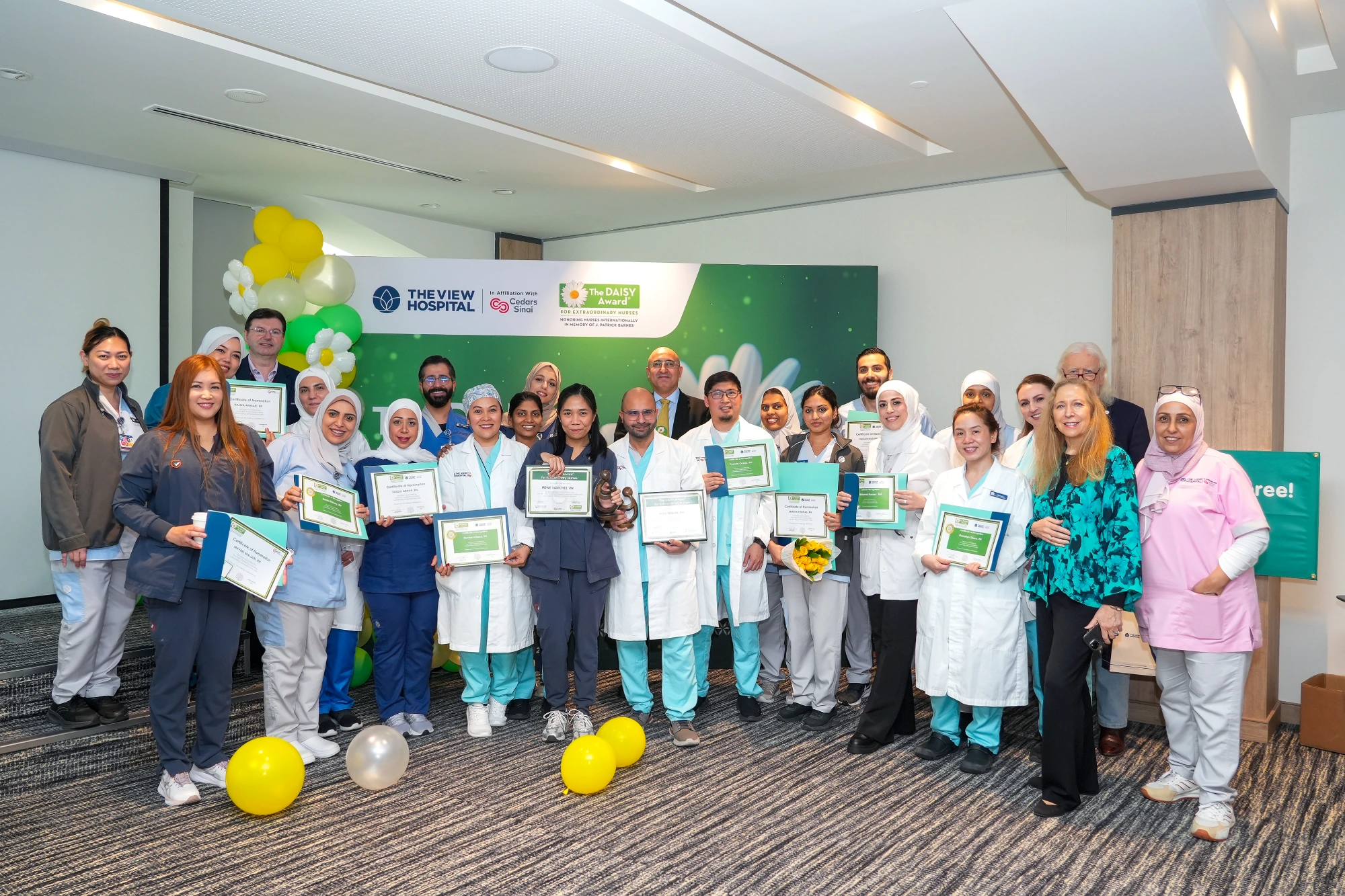 احتفل مستشفى «ذا فيو» مؤخرًا بحفل جوائز ديزي، في مناسبة مميزة خُصصت لتكريم نخبة من طاقم التمريض الذين يجسدون أسمى معاني الرحمة، والتميّز المهني، والالتزام الراسخ بتقديم رعاية إنسانية عالية الجودة للمرضى.