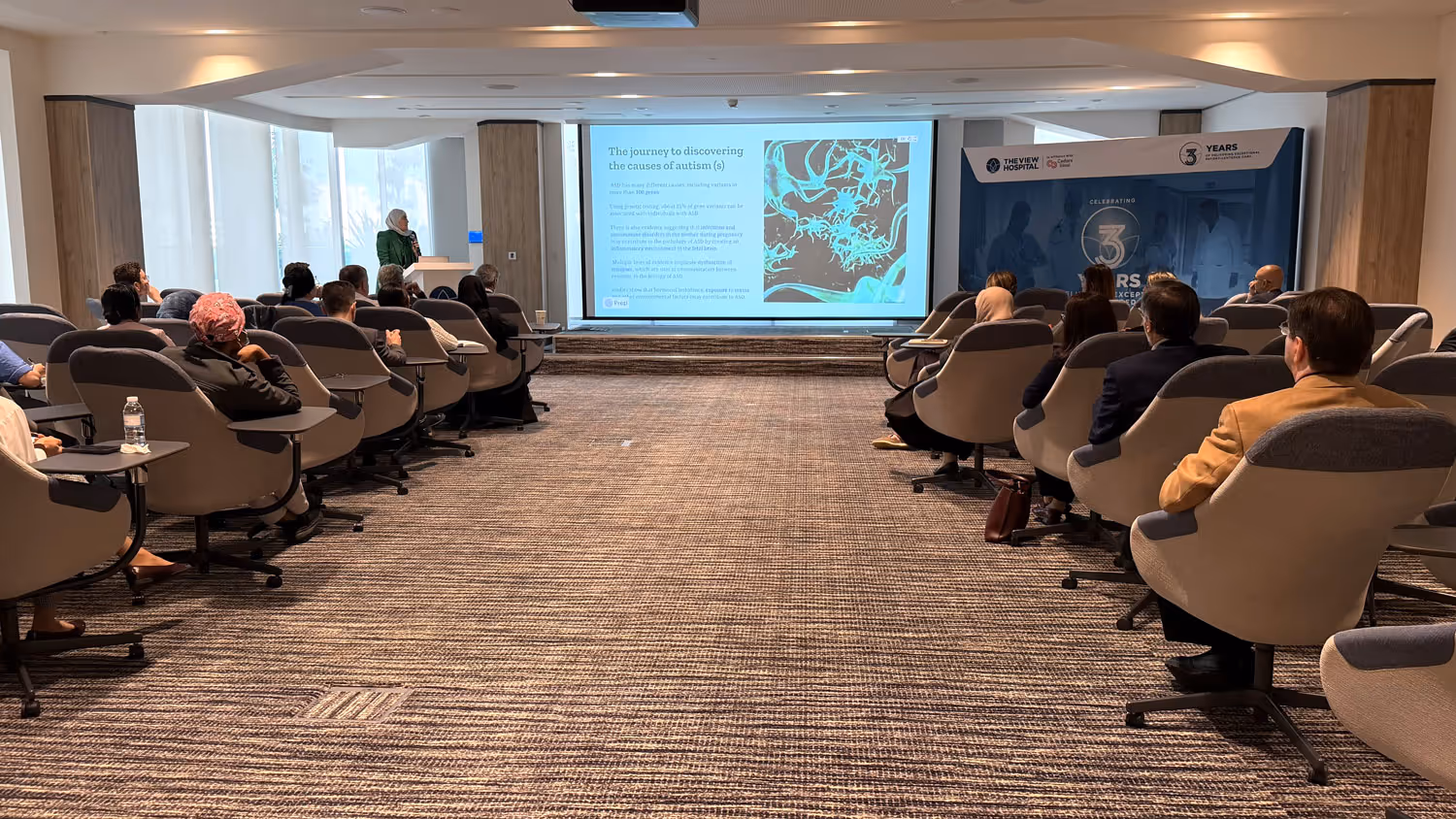 وخلال المحاضرة، استعرضت الدكتورة باريا أحدث المستجدات العلمية في مجال رعاية اضطراب طيف التوحد، مسلطة الضوء على الأساليب العلاجية الحديثة المبنية على الأدلة العلمية، ودورها في دعم التدخل المبكر وتطوير خطط الرعاية طويلة الأمد، بما ينعكس إيجابًا على جودة حياة الأطفال وأسرهم.